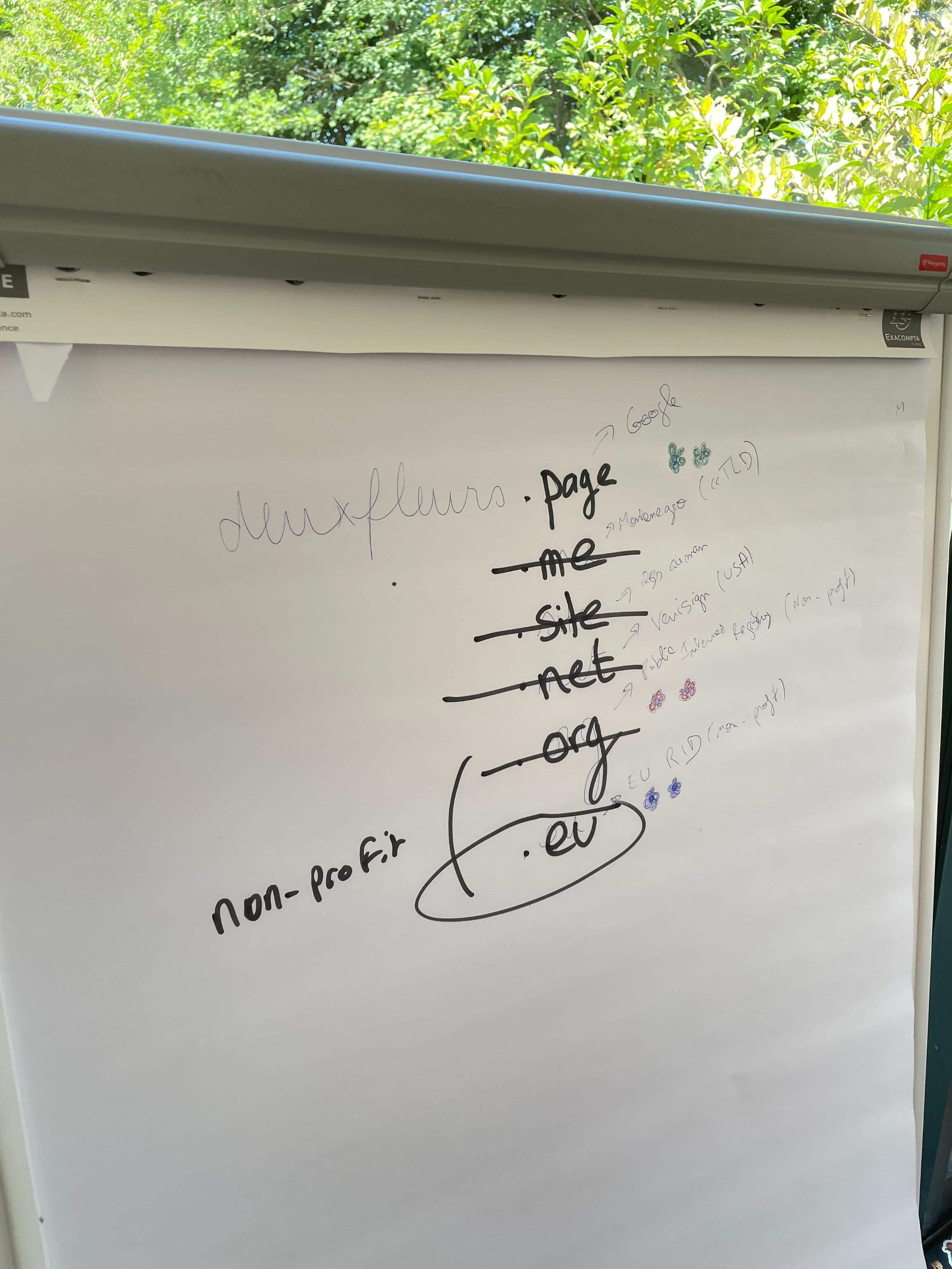 Le choix des domaines deuxfleurs.eu et deuxfleurs.page est le fruit de délibérations collectives qui se sont déroulées lors des rencontres d’été 2025. Voilà pourquoi :